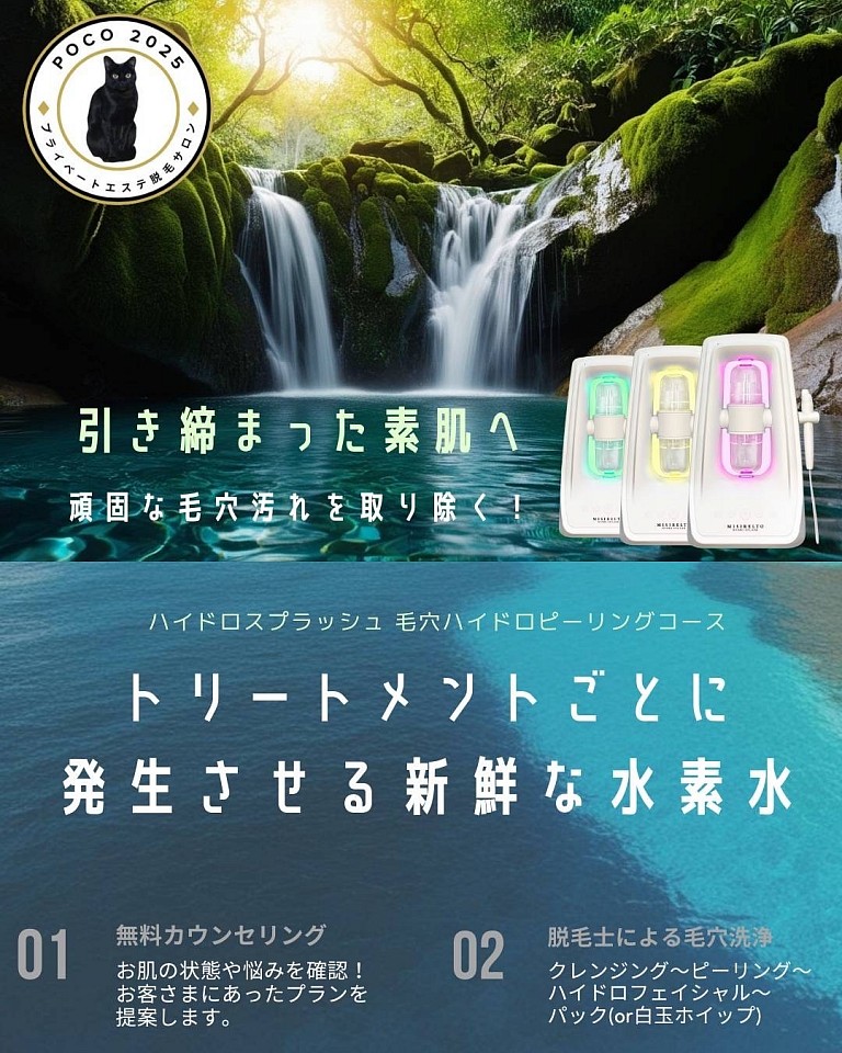 完全個室予約制の脱毛サロン&毛穴洗浄サロンです。